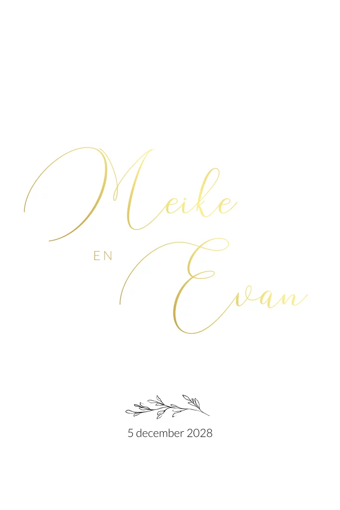 Klassieke trouwkaart met geschept randje. De tekst op de voorzijde staat in goudfolie.