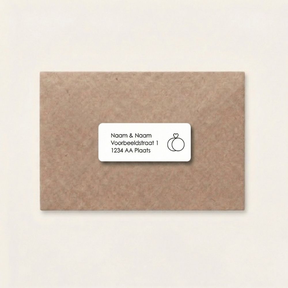 Adresstickers voor bij je trouwkaart met lijntekening van trouwringen met hartje. Maak je trouwpost helemaal af met bijpassende adresstickers.