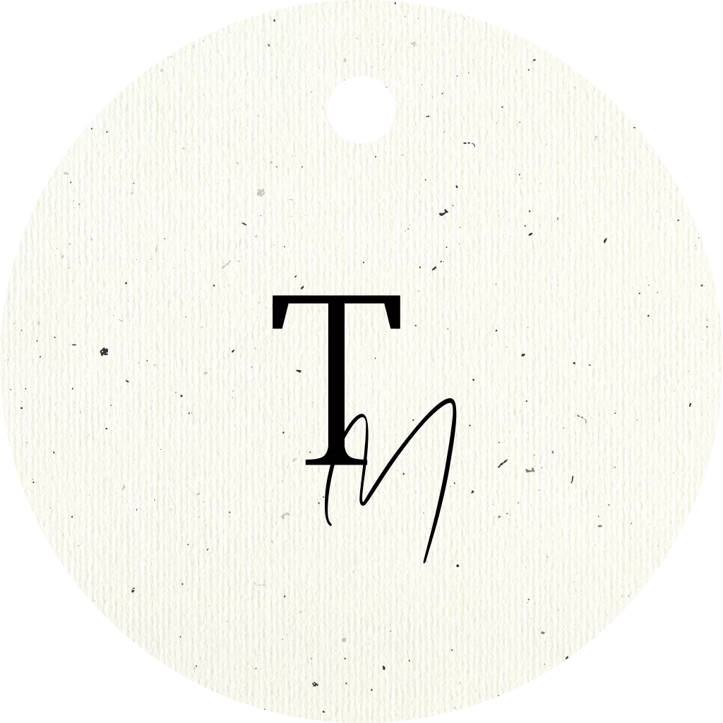 Ronde labeltjes met trouwlogo voor aan een bedankje voor de bruiloft. Voorzien van boorgaatjes om er makkelijk een touwtje of lintje doorheen te doen.21 × 21 cm | vanaf 11,95 p/st |