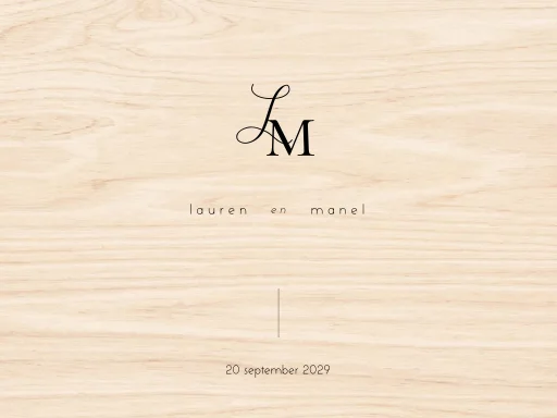 Houten bewaardoos in stijl van de trouwkaart. Met de namen en initialen. Leuk als huwelijkscadeau of om jezelf cadeau te doen na afloop van de bruiloft!