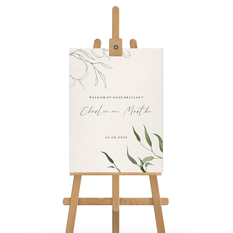Welkomstbord bruiloft schets bladeren