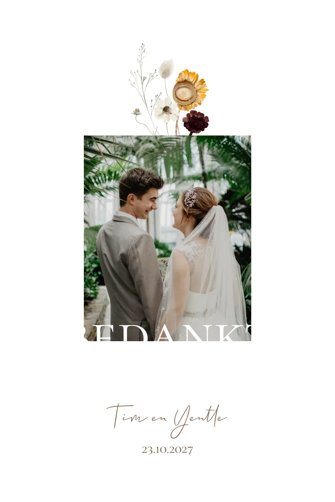 Bedankkaart bruiloft gekleurde bloemen boeket