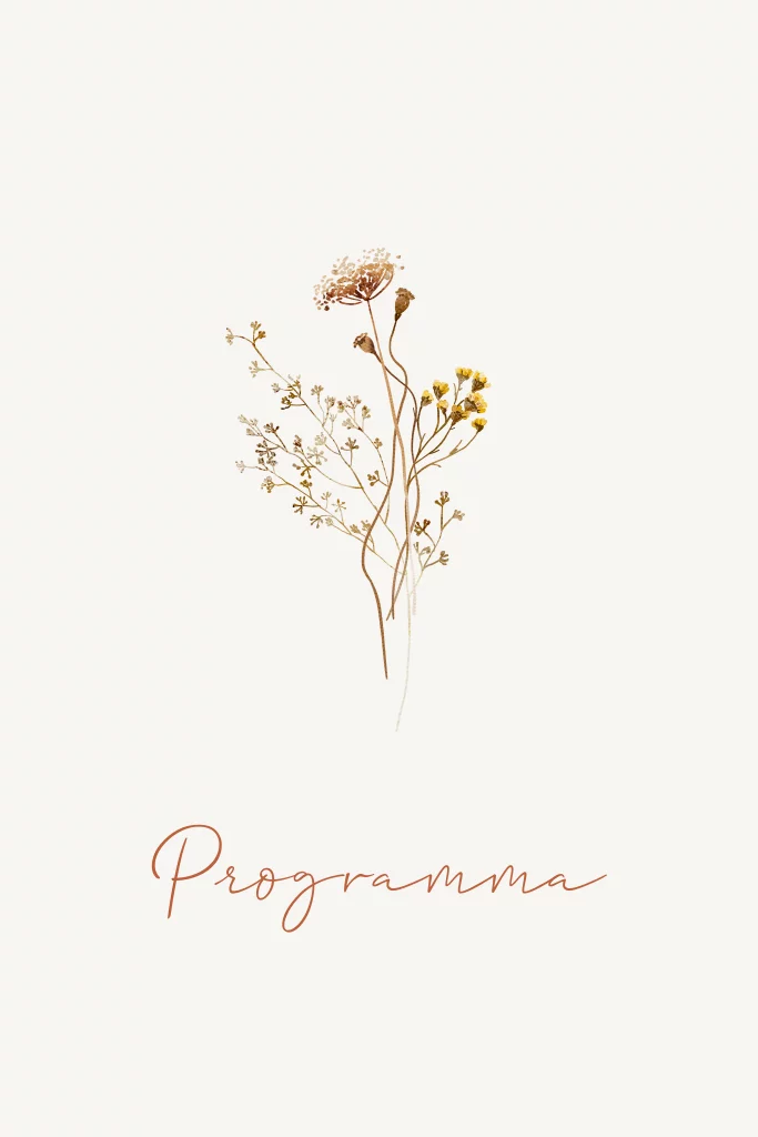 Dagplanning bruiloft met een boeket veldbloemen in aardetinten.
