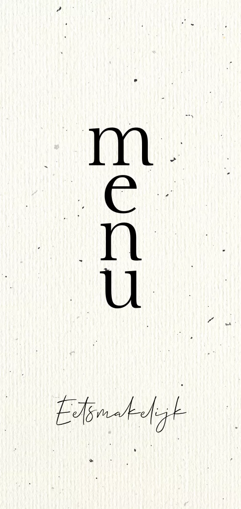 Menukaart voor tijdens het bruiloft diner. Een kaart met licht gevlekte achtergrond. Passend bij de trouwkaart in deze zelfde stijl.Proefdruk | vanaf 1,00 | |||||||||||||||