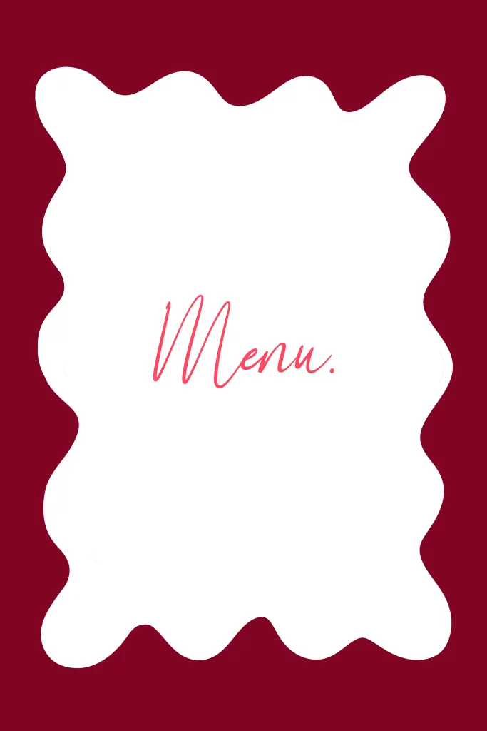 Hippe menukaart voor de bruiloft met een golvende rand. Pas de kleuren en lettertypes eenvoudig aan in de online editor.