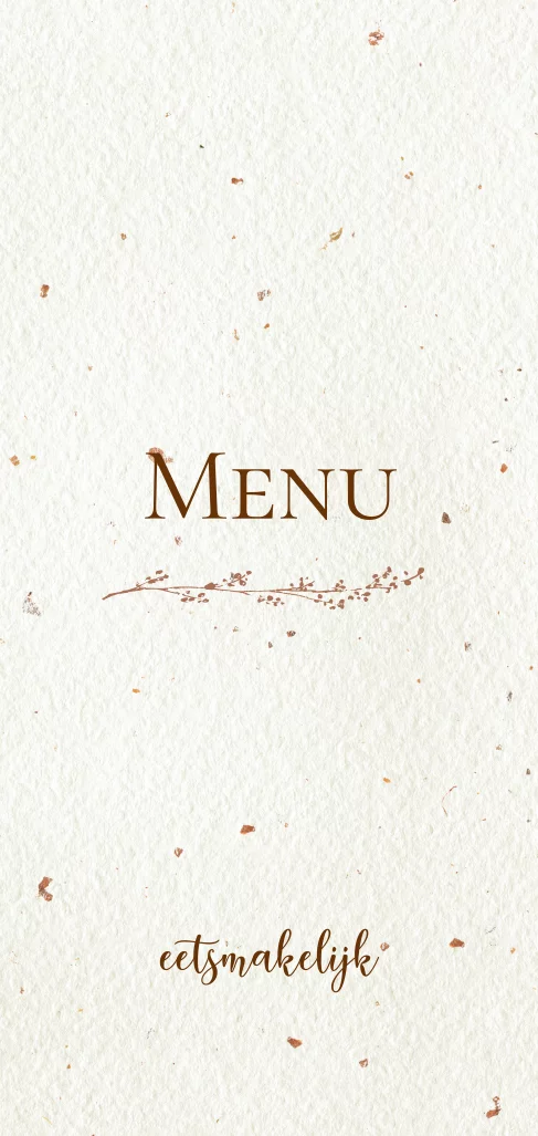 Menukaart voor de bruiloft met een gevlekte achtergrond en fijne takjes.