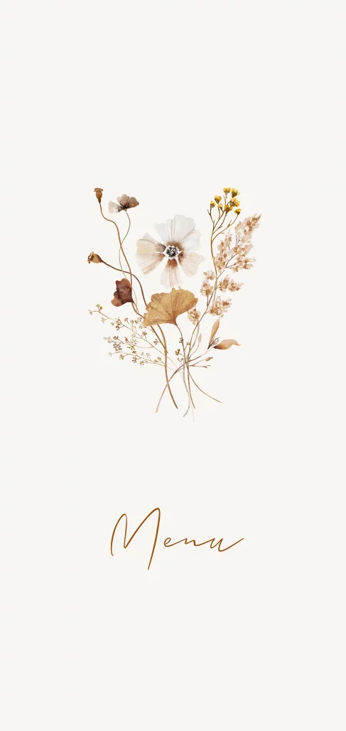 Menukaart met een boeket veldbloemen. Passend bij de Veldboeket trouwkaart en geheel aan te passen naar eigen wens!