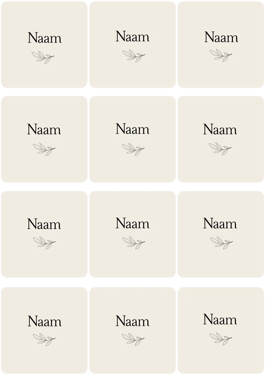 Maak je bruiloft ceremonie of diner compleet met deze vierkante naamkaartjes met afgeronde hoeken. Je ontwerpt ze helemaal naar wens en bestelt per vel van 12 stuks. Met hun formaat van 6,9 × 6,9 cm vallen ze stijlvol op bij elk bord of op elke stoel. Omdat ze dubbelzijdig bedrukt zijn, kun je aan beide kanten een tekst of ontwerp plaatsen. Heb je meer namen? Maak eenvoudig een kopie van je ontwerp in je account en voeg zo extra namen toe.