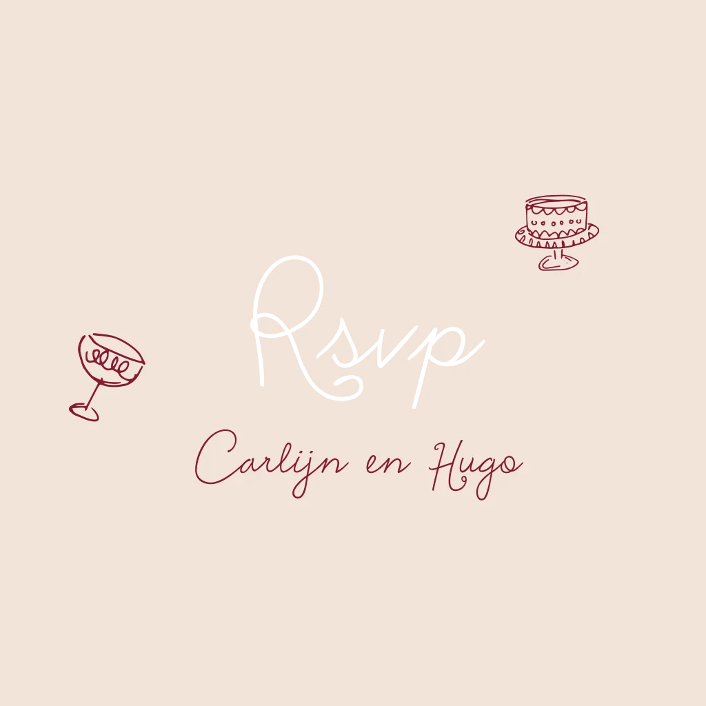 RSVP kaartje roze rood vrolijk doodles