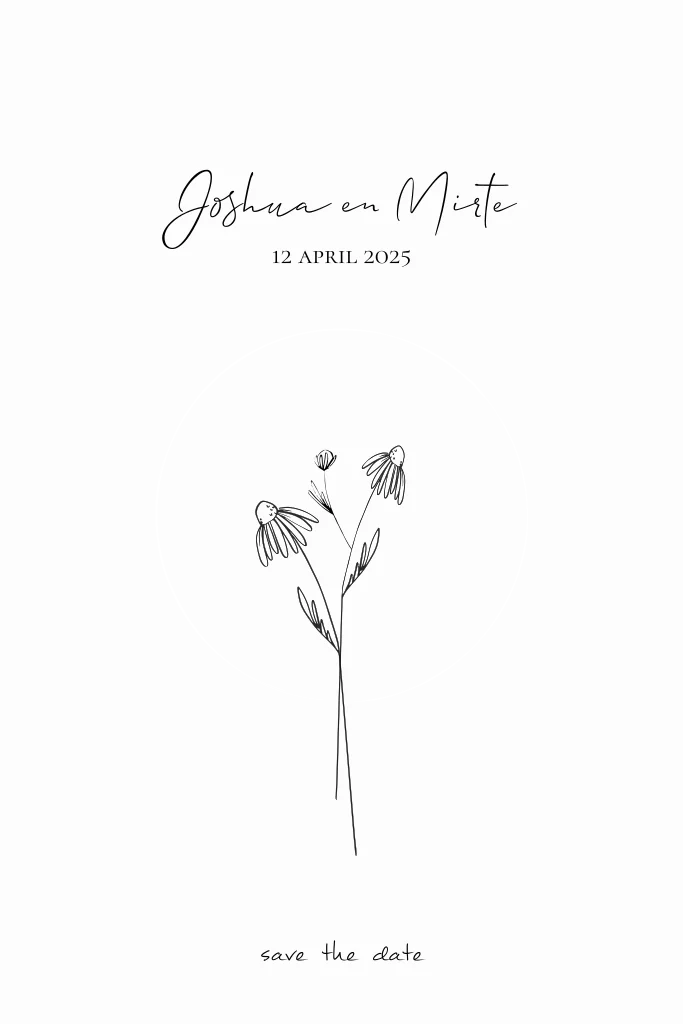 Save the Date kaart cirkel madeliefjes met goudfolie.