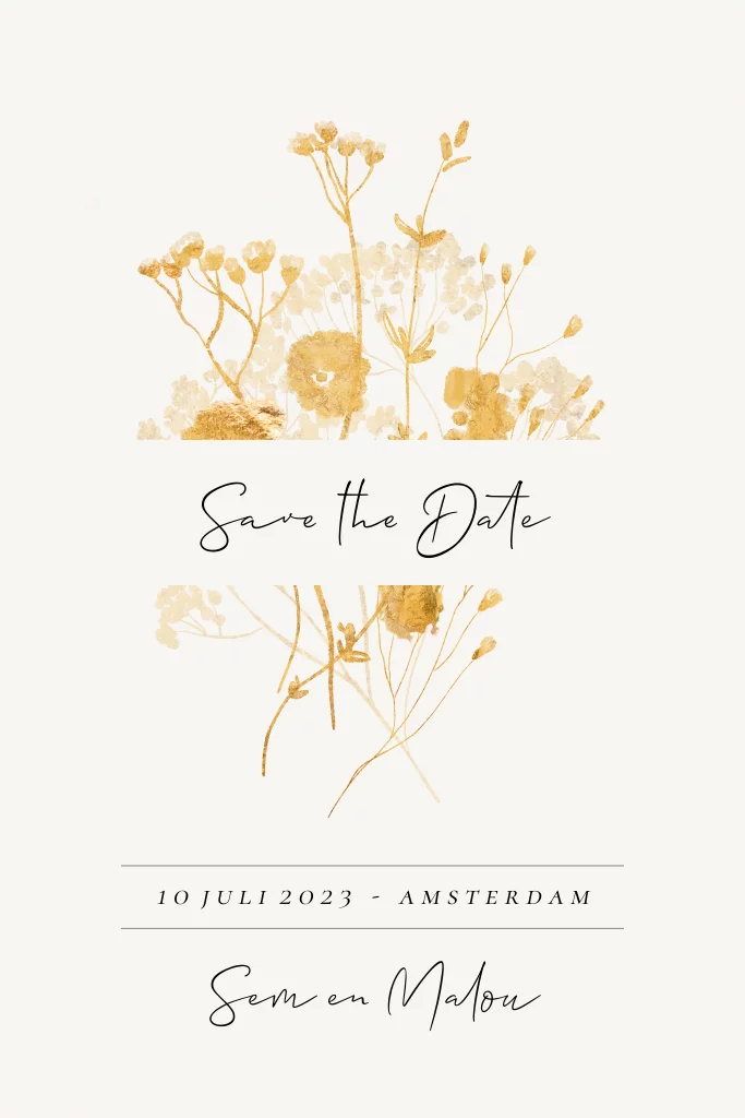 Save the Date geelgouden bloemen