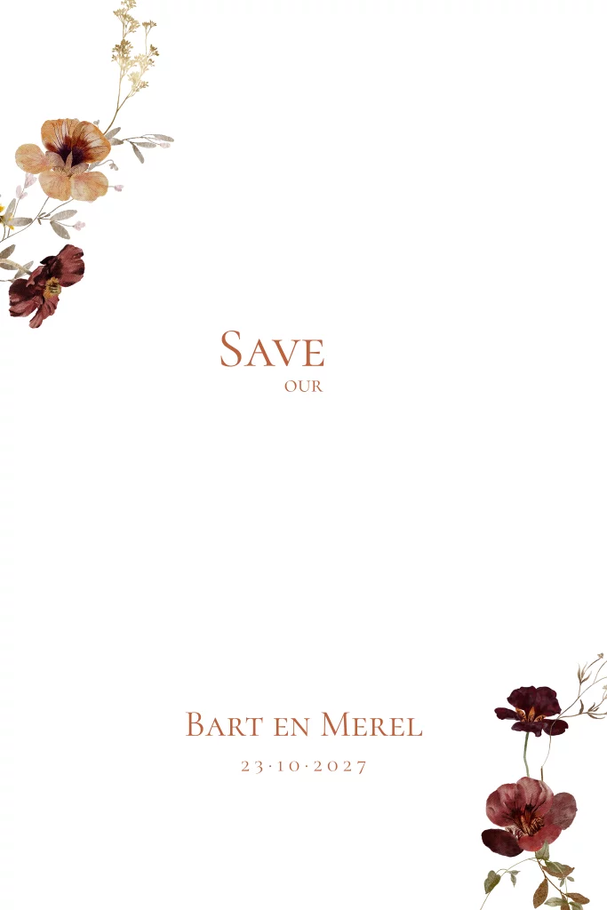 Save the Date kaart bloemen aardetinten
