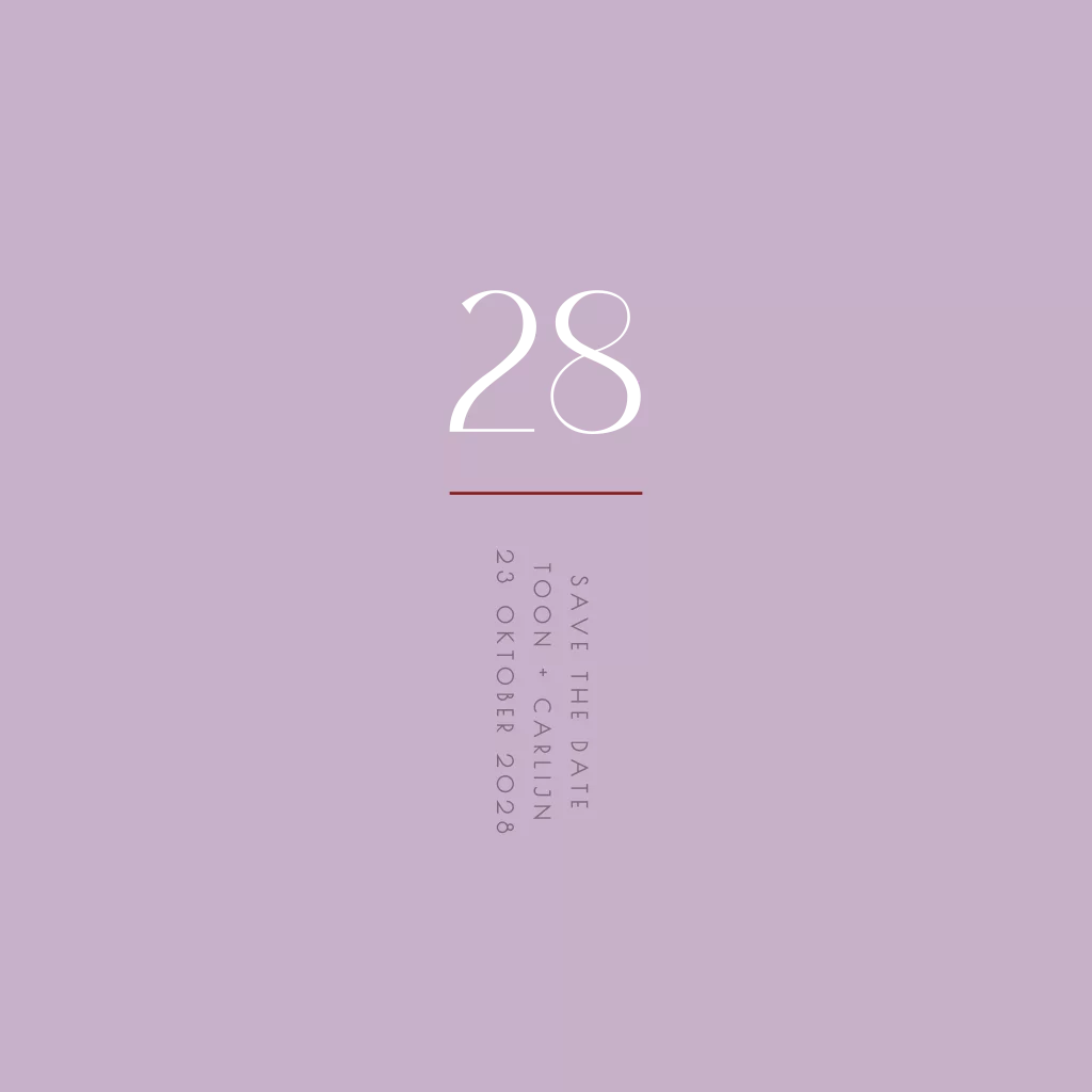 Kleurrijke en moderne Save the Date met de datum op de voorzijde in goudfolie. De kleuren zijn een prachtige mix van paars, bordeaux rood en goudfolie.