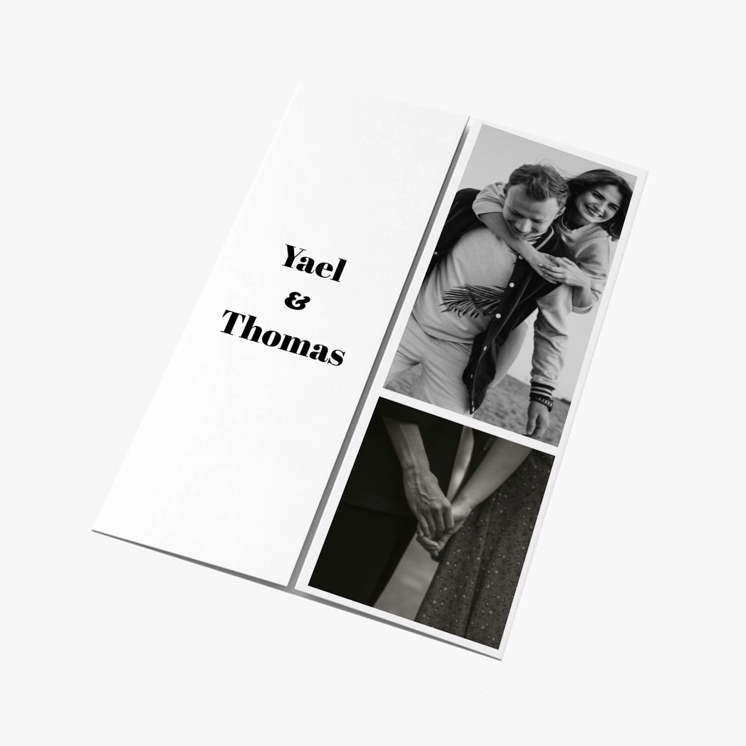 Trouwkaart met luikvouw. Een strak design met zowel aan de buitenzijde als de binnenzijde de mogelijkheid om eigen foto's toe te voegen.