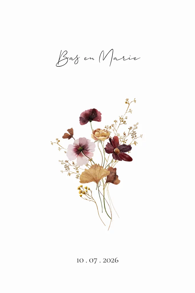 Trouwkaart bloem boeket aardetinten