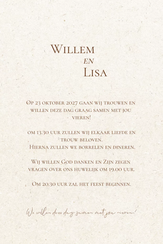 Trouwkaart eco vezel look bruintinten
