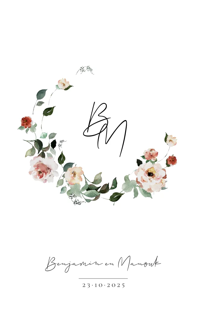 Trouwkaart met kleurrijke bloemenkrans