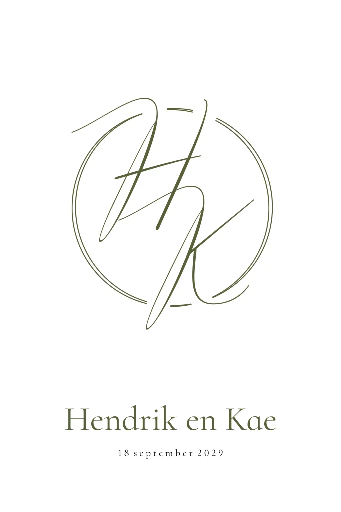 Rustige trouwkaart met de initialen van het bruidspaar.