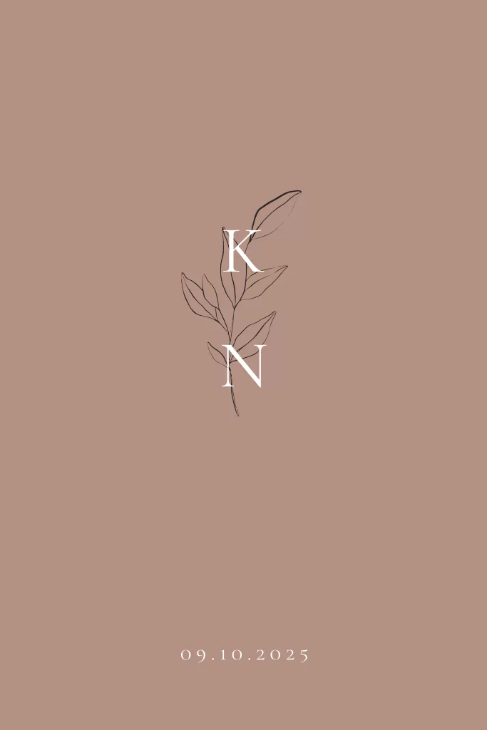 Minimalistische trouwkaart. Met een takje op de voor- en achterzijde.