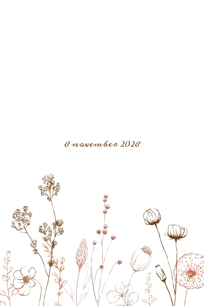 Een romantische trouwkaart met verschillende wilde bloemen in aardetinten.