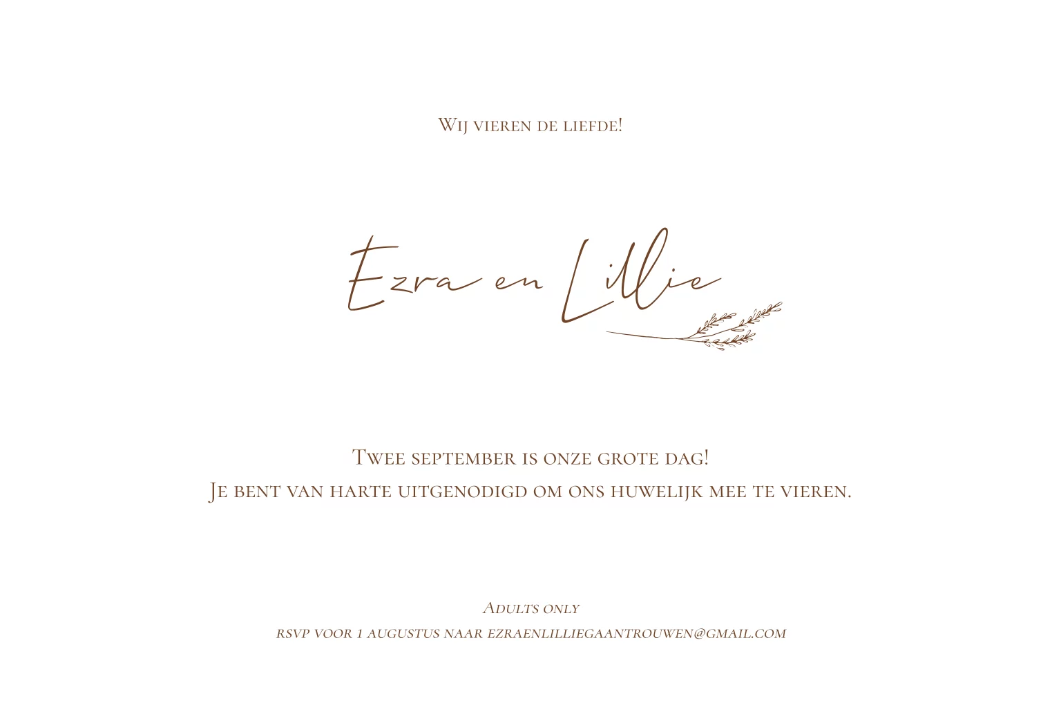 - Marloes“Ruime keuze uit geboortekaartjes die passen bij het seizoen, heel fijn dat je ze zelf kan aanpassen naar smaak. We hadden alles klaar staan en hoefde alleen nog geboorteinfo aan te passen. Daardoor waren de kaartjes al op dag 3 na de geboorte in huis! Superfijn.”