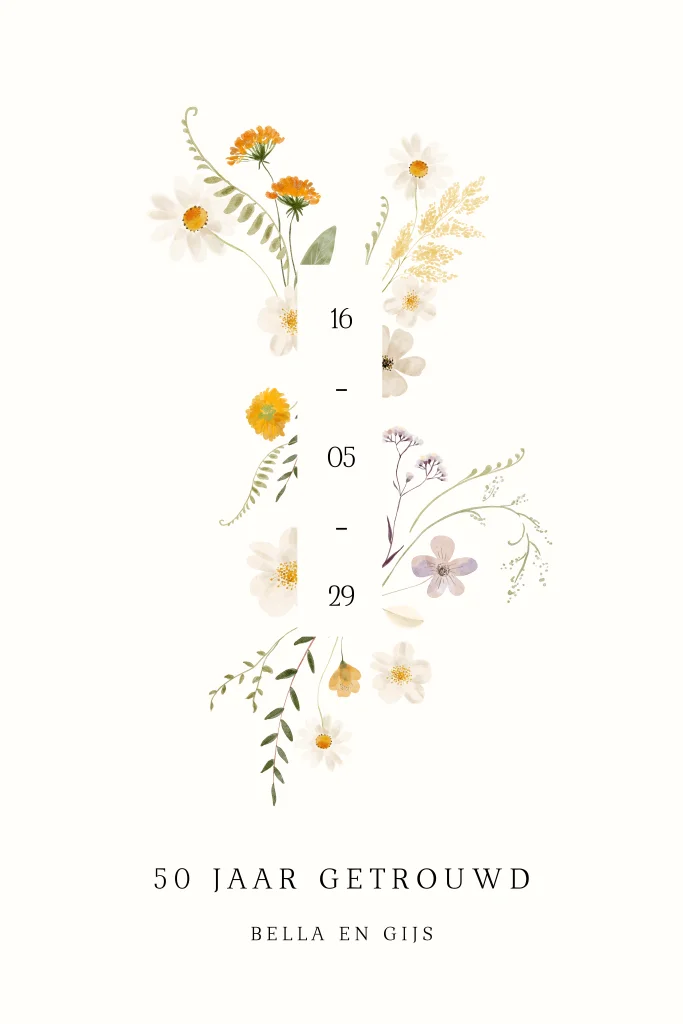 Jubileum kaart 50 jaar gekleurde wilde bloemen