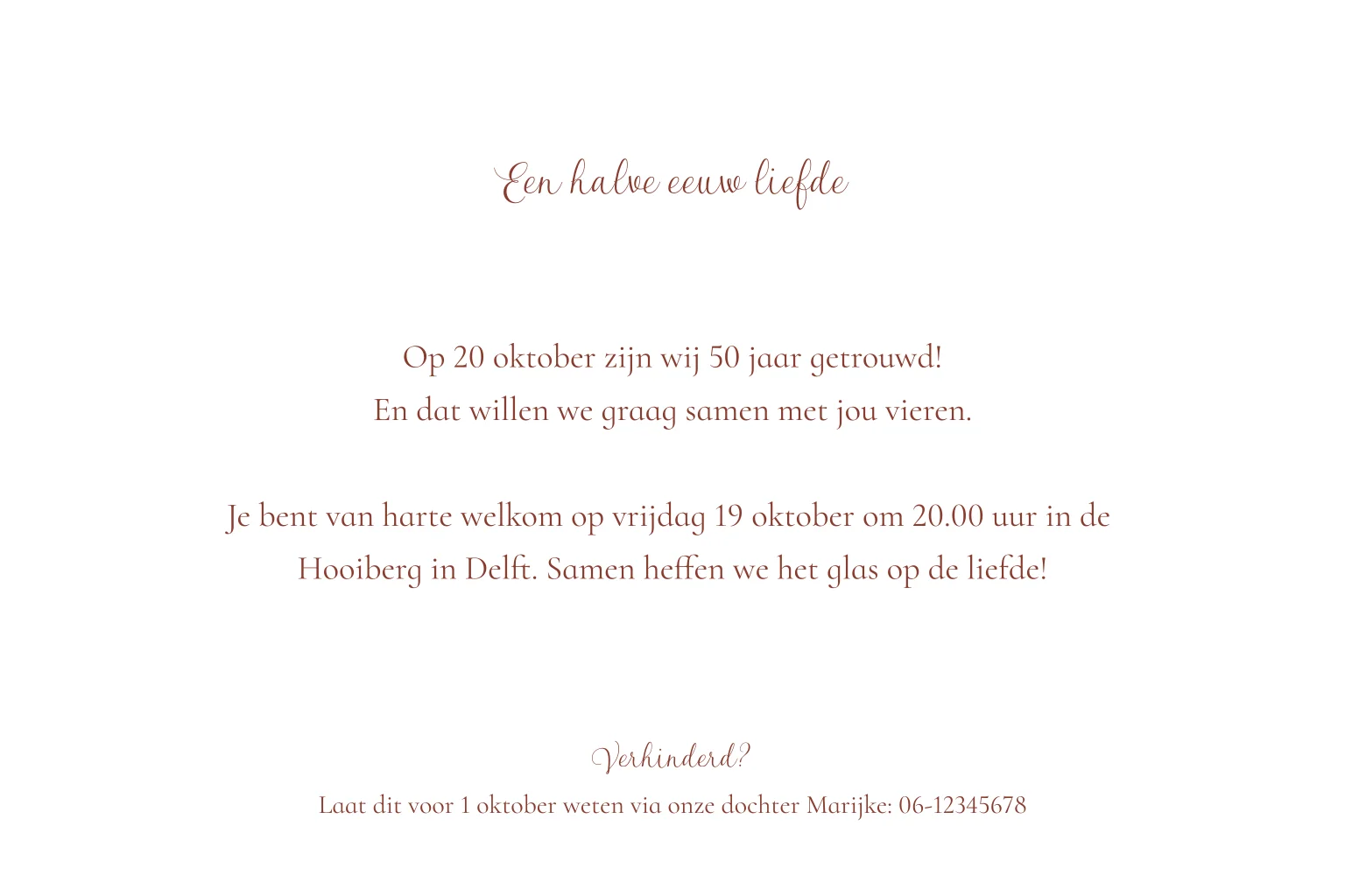 De tekst is eenvoudig aan te passen in onze online editor, zodat je de kaart helemaal persoonlijk kunt maken.