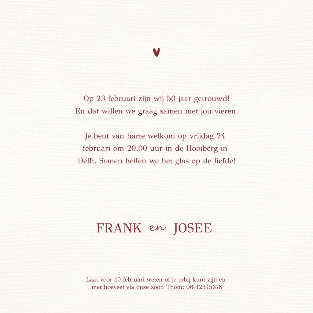 De tekst is eenvoudig aan te passen in onze online editor, zodat je de uitnodiging helemaal naar wens kunt maken.