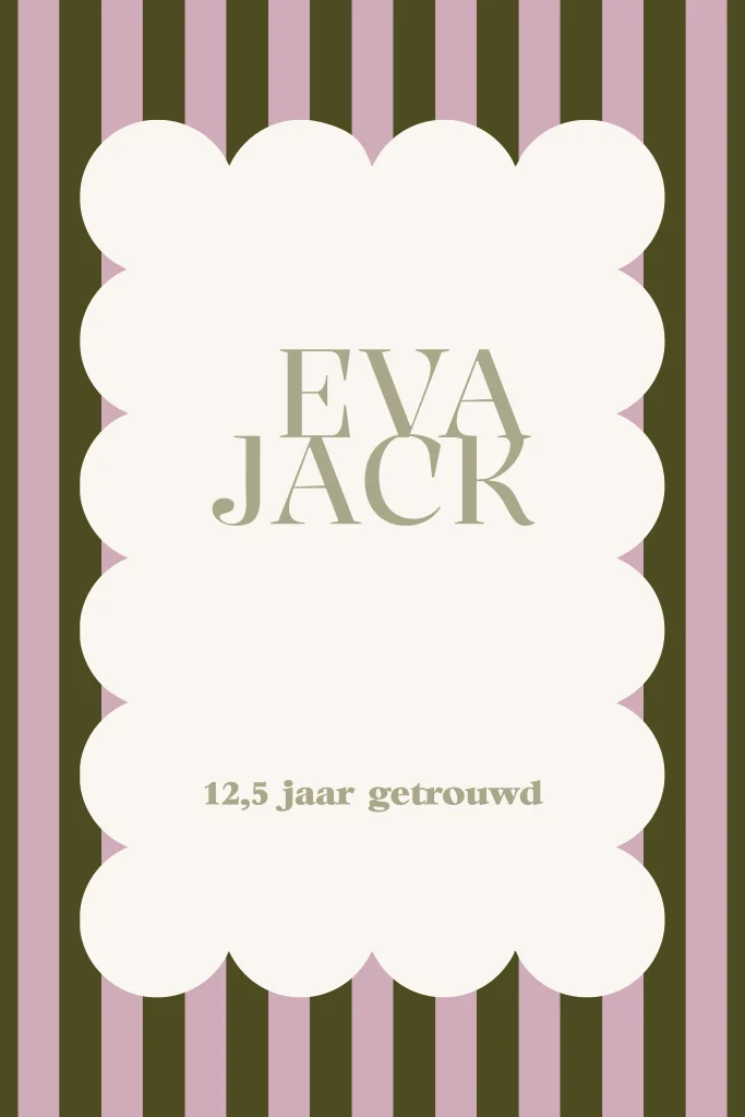 Vrolijk gekleurde en gestreepte kaart voor een huwelijksjubileum in de kleuren groen en lila roze.