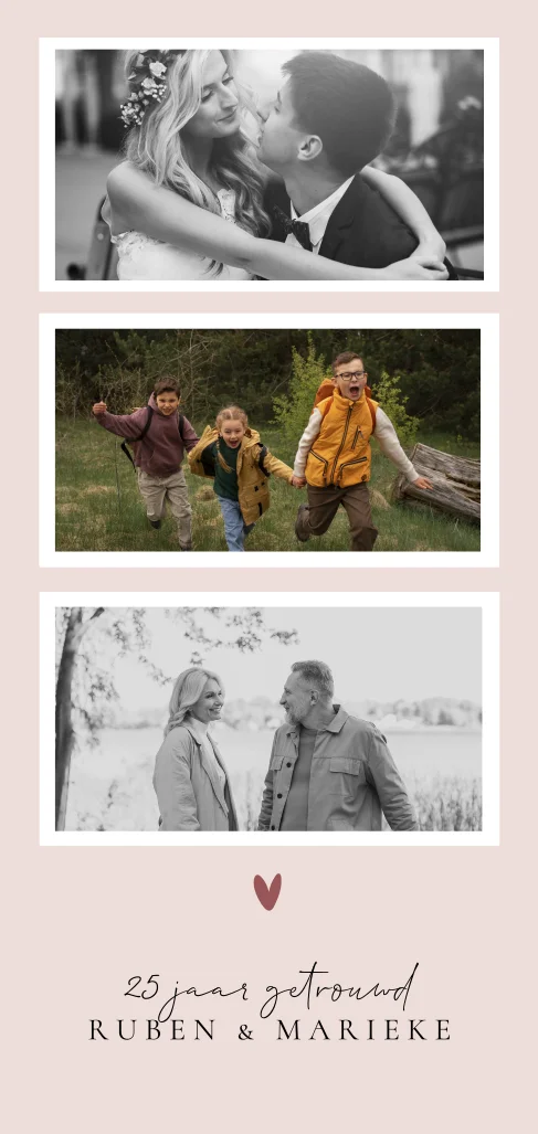 Moderne huwelijksjubileumkaart in zachte roze tinten en een stijlvol panorama formaat. Het eigentijdse ontwerp maakt deze kaart perfect voor het vieren van een bijzonder huwelijksjubileum.