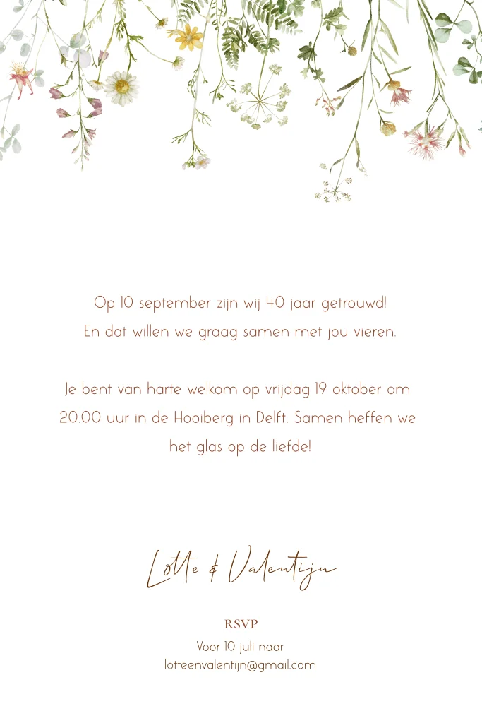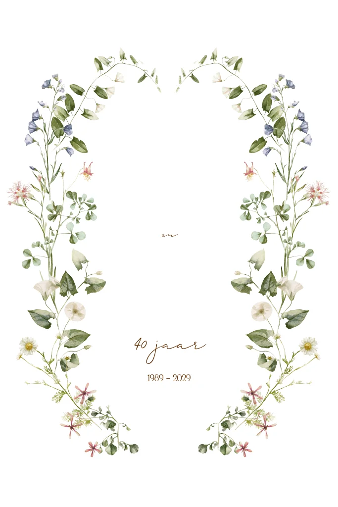 Uitnodiging 40 jaar getrouwd bloemenkrans wilde bloemen