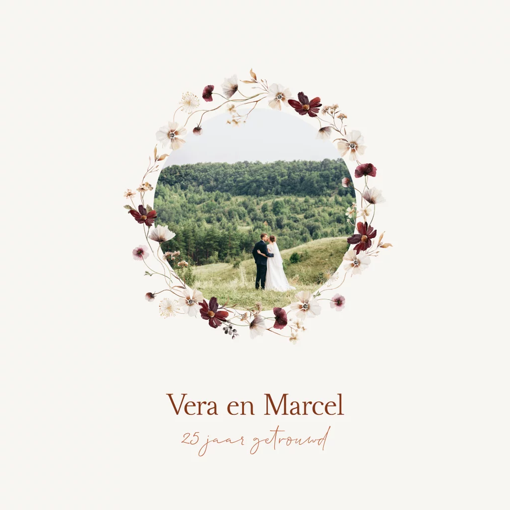 Uitnodiging jubileum 25 jaar getrouwd bloemenkrans